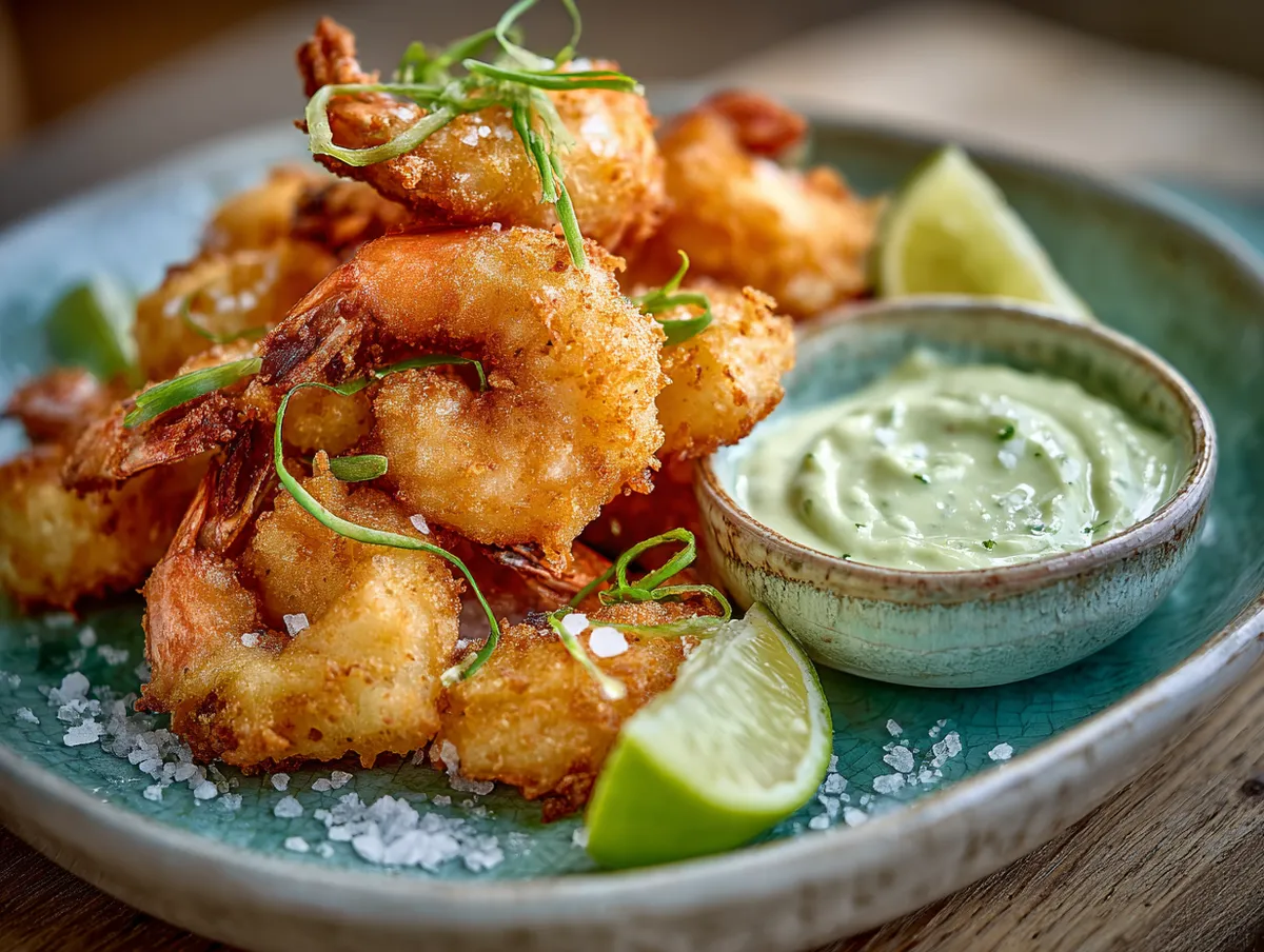 Den här versionen är enkel men genomtänkt. Smeten är en japansk-inspirerad tempurabas där kolsyrat vatten och majsstärkelse tillsammans skapar en luftig, nästan spetsaktig panering. Till detta en lime- och chilidipp som både svalkar och ger värme på en och samma gång. Perfekt som förrätt, som del av en buffé eller bara som något gott att bita i med ett kallt glas i handen.