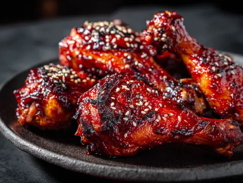 Koreanska kycklingklubbor i yangnyeom-stil är en av Koreas mest älskade streetfood- rätter. Den klibbiga, söt-kryddiga glasyren av gochujang och honung fastnar på fingrarna och på tallriken, och det är precis som det ska vara. Det här är kyckling som man verkligen äter med händerna – saftig, intensiv och fullständigt beroendeframkallande.