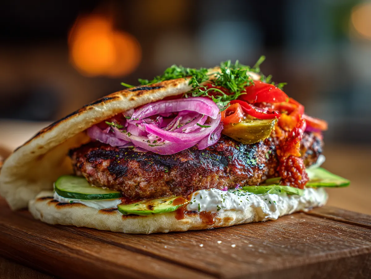 Pljeskavica är en traditionell rätt från före detta Jugoslavien och serveras idag över hela Balkan, från Slovenien till Nordmakedonien. Ordet kommer från det serbiska "pljeskati" — att platta till, att klappa. Det är precis vad man gör med färsen.
