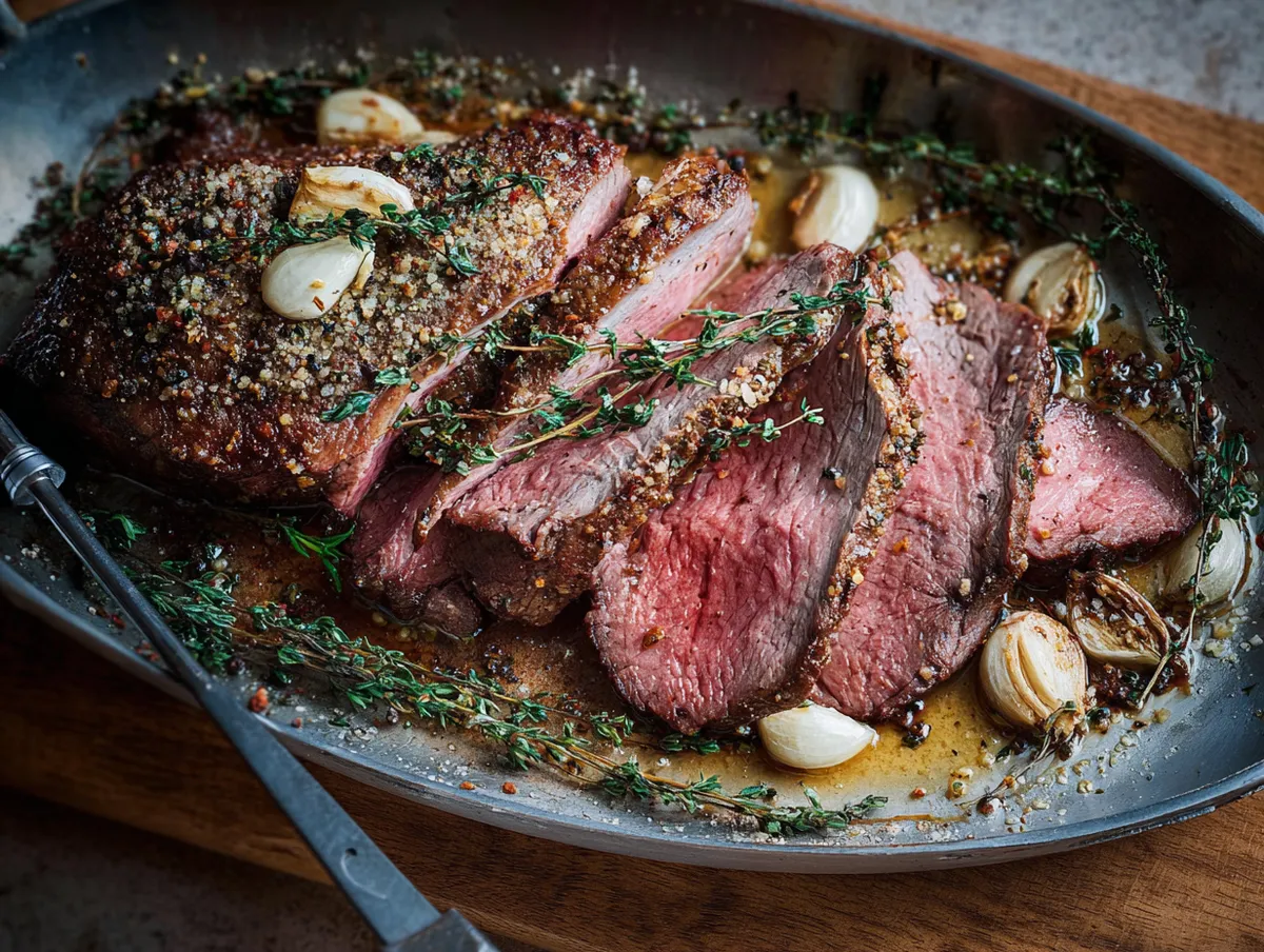 Rostas i ugn är en sådan rätt som imponerar utan att kräva hjältemodiga insatser i köket. En bit möra som brynes i panna, baserad med vitlök och timjan, och sedan lugnt får gå färdigt i en låg ugn. Resultatet är ett saftigt, jämnt rosa kött som du kan skära i tunna skivor och servera till både helgmiddagen och söndagssteken.