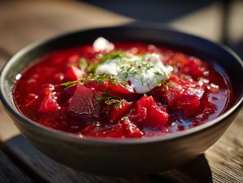 Få rätter är så visuellt slående som en skål borscht. Denna djupt rubinröda soppa, krönt med en virvlande klick vit gräddfil och ett strö av smaragdgrön dill, är lika mycket en fest för ögat som för gommen. Det är Östeuropas mest älskade soppa och en kulinarisk tradition som sträcker sig över länder och århundraden.
